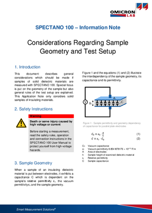 Special focus is put on the geometry of the sample but also general rules of the test setup are explained. This Application Note only considers solid samples of insulating materials.