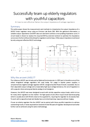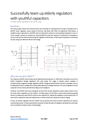 This white paper shows the measurements and methods to characterize the output impedance of a LM317 linear regulator using the Bode 100. With the gathered information, a suitable output capacitance and ESR value are derived to achieve a non-peaking impedance curve. A circuit tweak is shown to replace the required ESR by external resistors to optimize the impedance curves even further without disturbing the regulator's control loop. Check out the PDF document below to learn more.