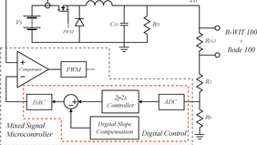 The proposed solution uses a discrete-time controller with digital slope compensation implemented using only a single-chip microcontroller. Detailed frequency response measurements are taken using the OMICRON Lab Bode 100 to confirm the stability of the converter.